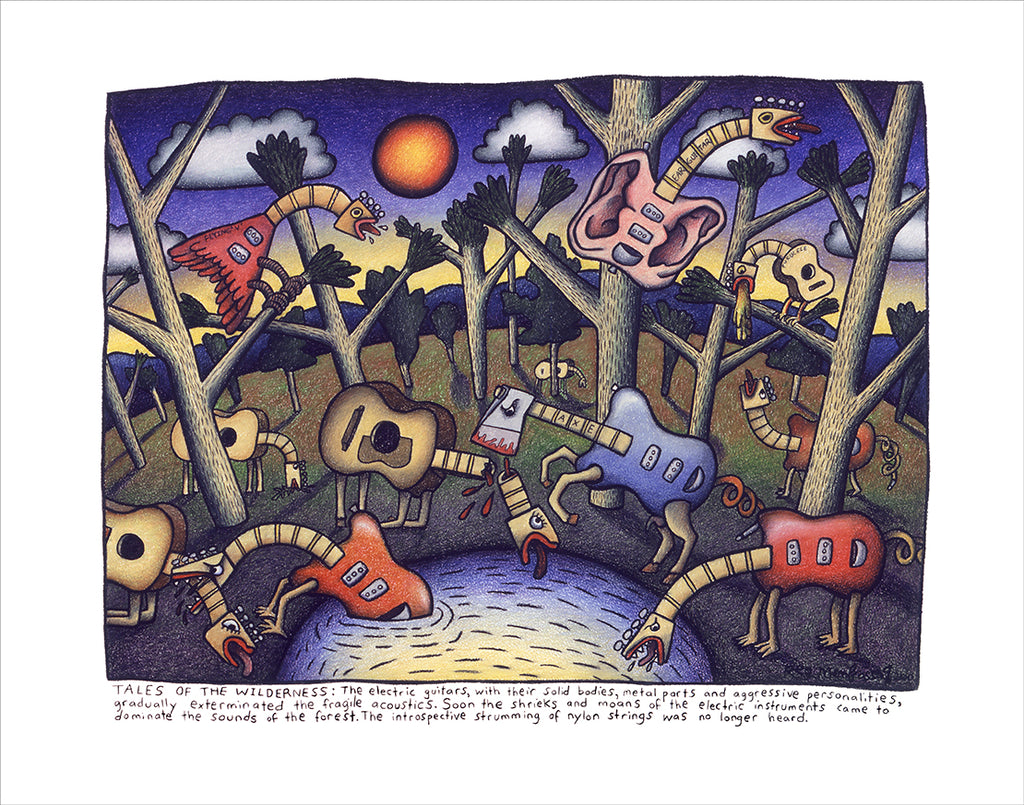 These prints are authorised reproductions, hand signed and numbered by Reg, and published by Reg Mombassa Studio. Printed using archival pigment inks on fine art cotton rag, each edition is the result of a meticulous process that takes place under Reg’s watchful eye. He is personally responsible for the curation and imaging of the original works, and personally proofs and signs every print. Each print comes with a Certificate of Authenticity and is individually recorded in the studio print register.